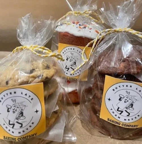 For custom logo’d individually wrapped cookies, please reach out to butterlatethanneverbakingco@gmail.com with your request.