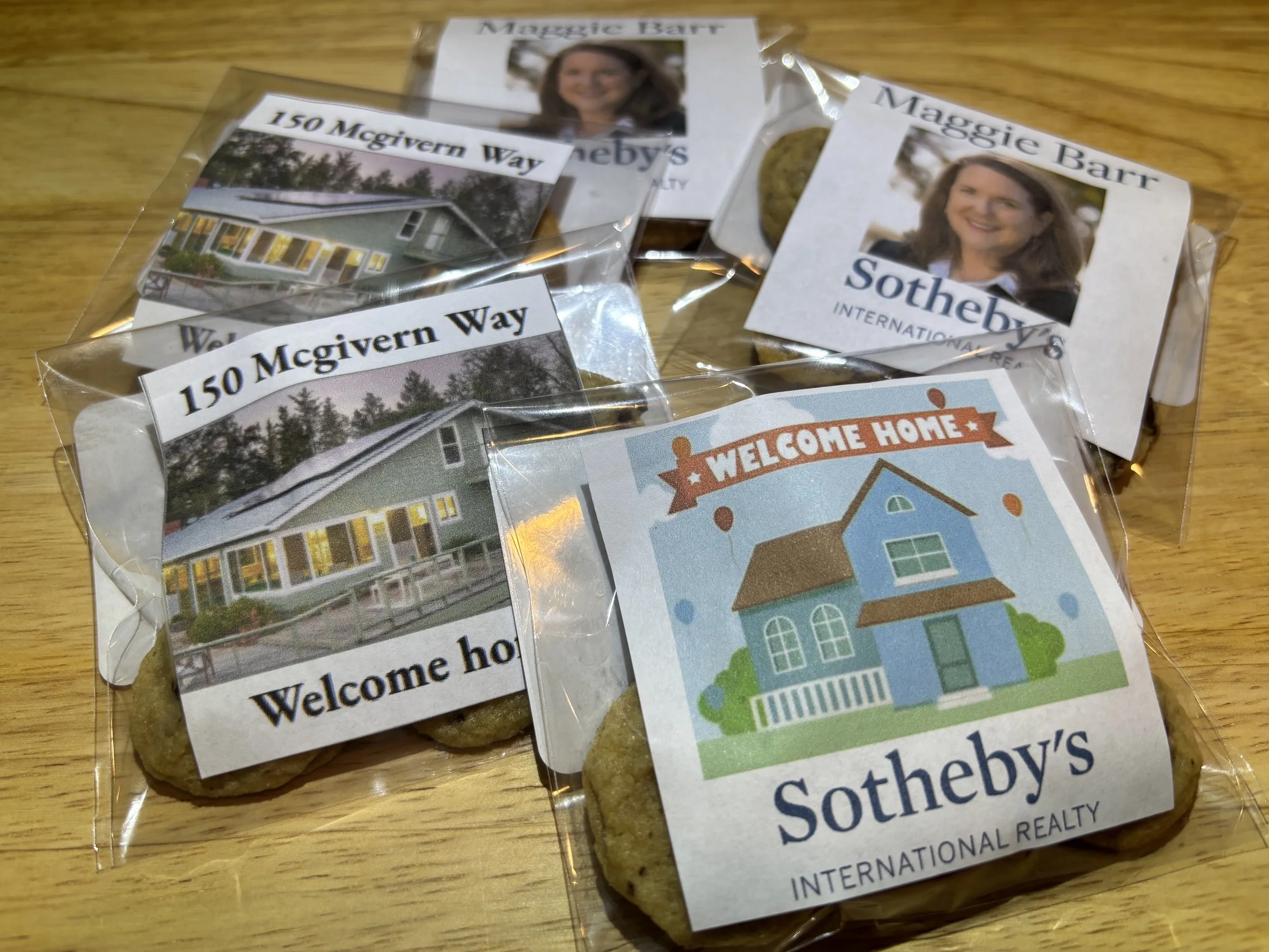 Are you a realtor in the Santa Cruz county area looking for open house giveaways or closing gifts for your clients? We offer custom logo’d and labeled individually wrapped cookies for open houses, and custom cookie cakes or cookie gift bags for closing gifts.